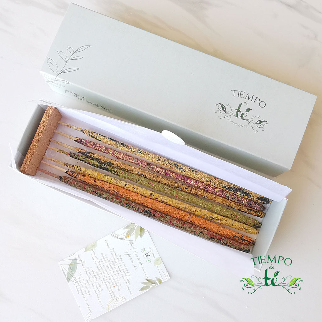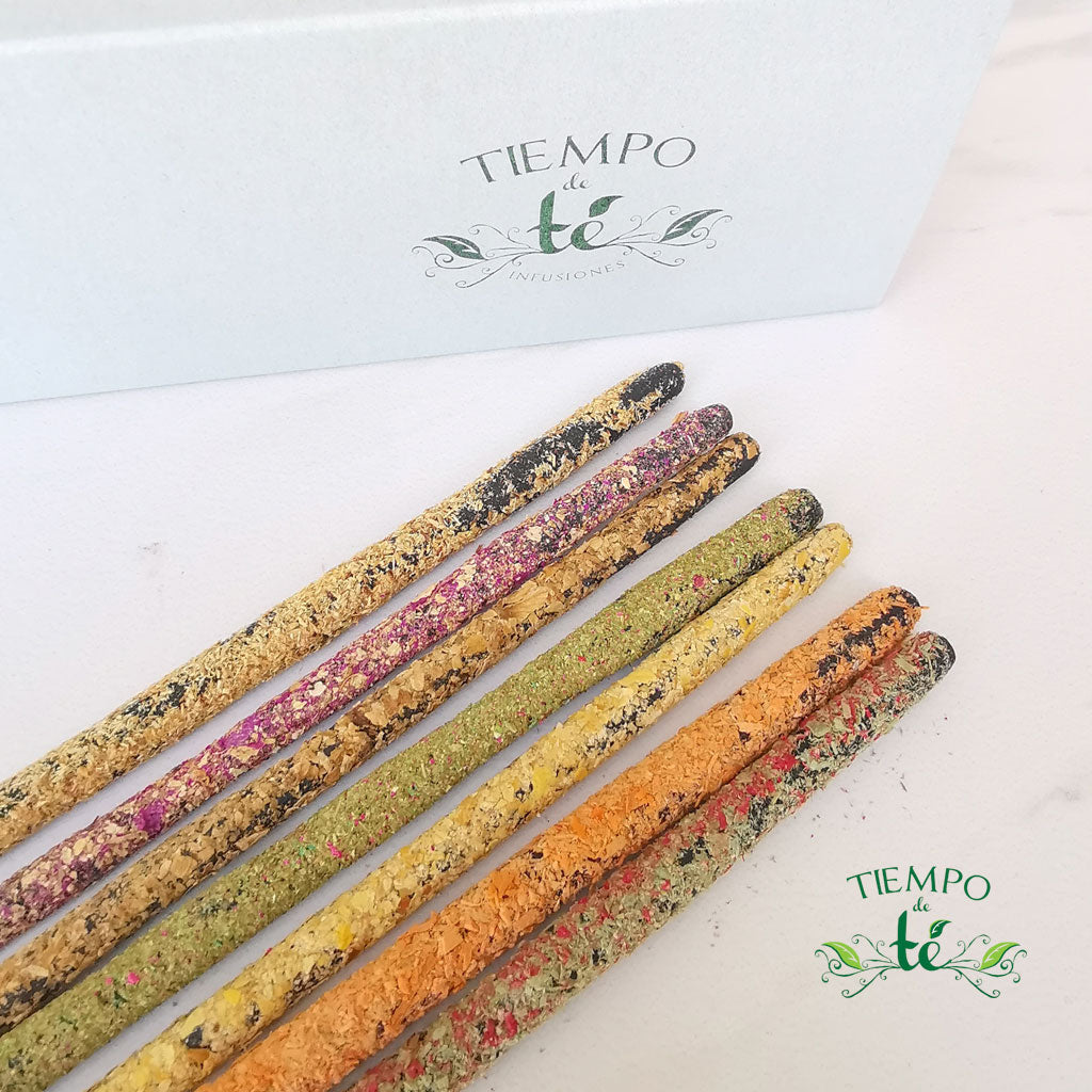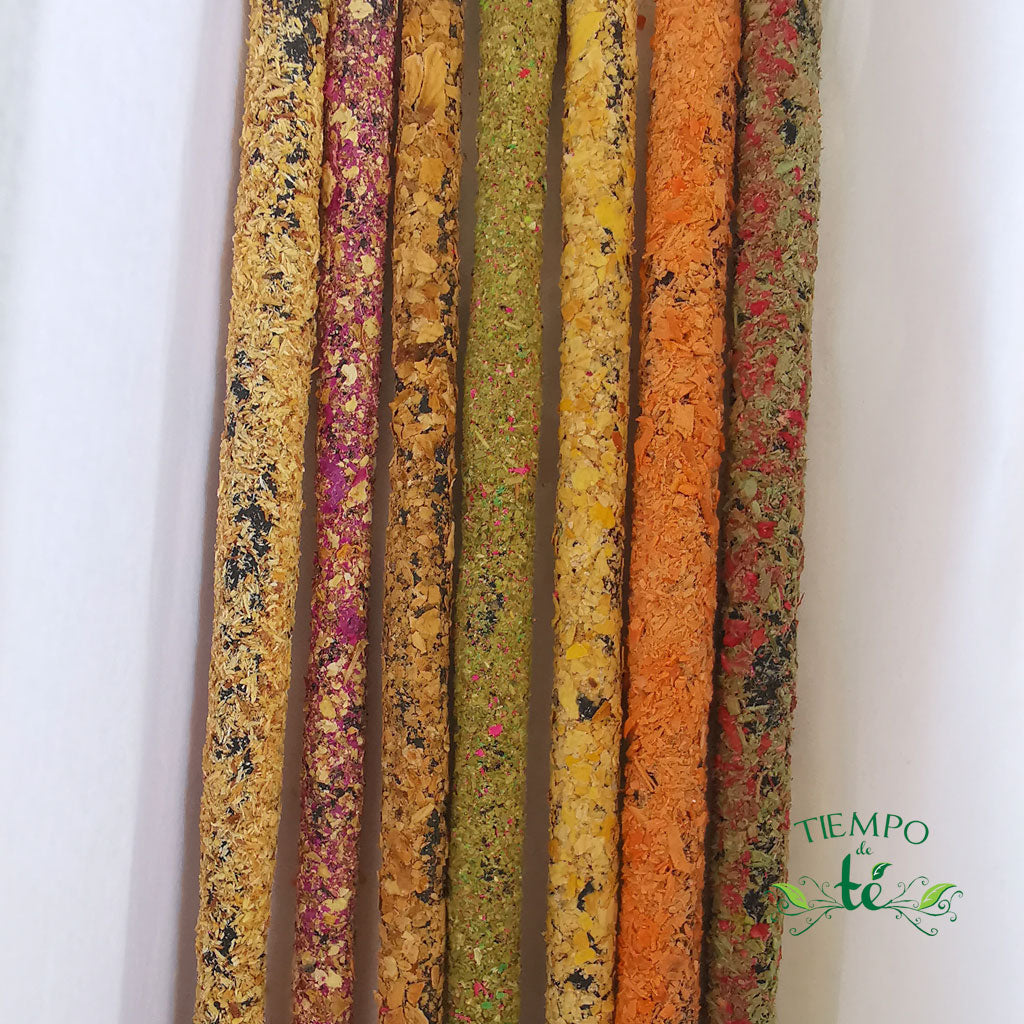 7 Inciensos de 15cm cada uno hecho a mano con productos naturales, libres de tóxicos, con aromas, dulces, cítricos, frescos y florales.